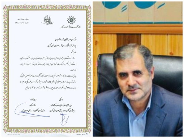 بدینوسیله از زحمات و تلاشهای مستمر و حضور منظم جنابعالی در جلسات شورای گفتگوی دولت و بخش خصوصی به عنوان یکی از اثربخش ترین سازو کارهای رفع موانع تولید و فعالیت های اقتصادی در مسیر توسعه کشور و همچنین پیگیری مصوبات مربوطه در سال 1399 تقدیر و تشکر نموده، سربلندی، پیروزی و موفقیت شما را از درگاه احدیت مسئلت می نماییم.