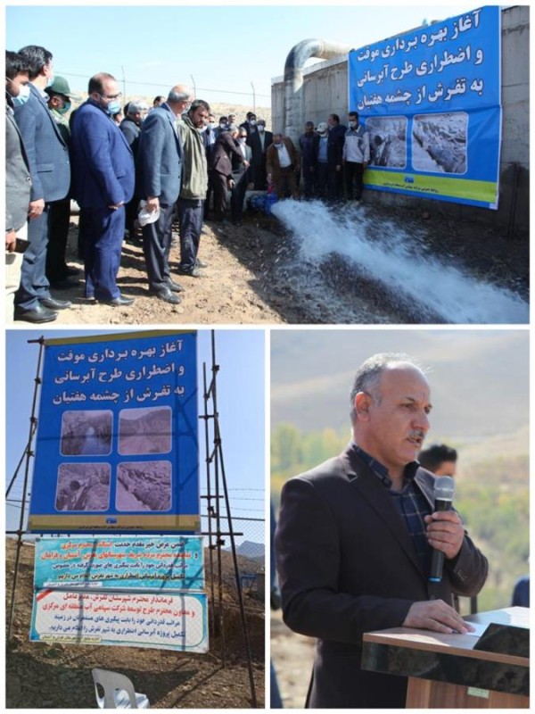 وی خاطر نشان کرد: به منظور کاهش تنش آبی مربوط به تأمین آب شرب شهروندان شهر تفرش و به استناد مصوبات شورای حفاظت از منابع آب استان که با ریاست استاندار استان مرکزی در شهر تفرش تشکیل شد طرح "موقت اضطراری " آبرسانی به شهر تفرش از چشمه هفتیان در دستور کار شرکت آب منطقه ای مرکزی قرار گرفت.