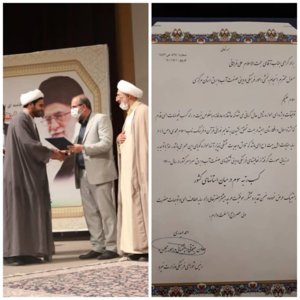در ارزیابی صورت گرفته از فعالیتهای فرهنگی و دینی شرکتهای صنعت آب و برق سراسر کشور در سال 1400، امور فرهنگی و دینی صنعت آب و برق استان مرکزی موفق به کسب رتبه سوم در میان سایر استانهای کشور شد.