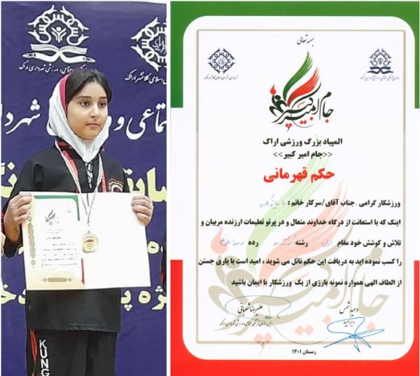 به گزارش روابط عمومی شرکت آب منطقه ای مرکزی، مانیا توکلی در المپیاد ورزشی اراک (جام امیرکبیر) در رده سنی نوجوانان که به مناسبت دهه مبارک فجر برگزار شد در رشته کنگ فو موفق به کسب مقام اول گردید.